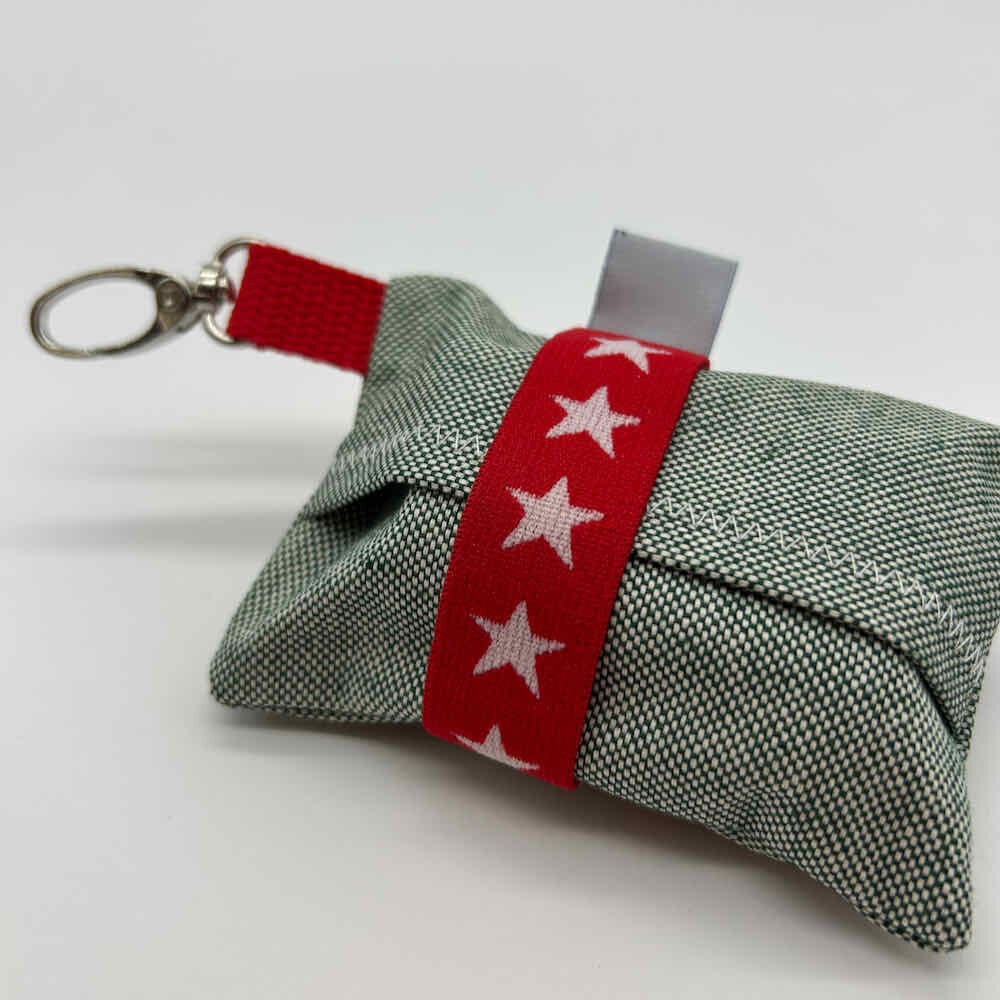 Jeder Hundebesitzer kennt das Problem: Die Befestigung und der Transport von Gassibeuteln. Mit diesem handgefertigten Tütchen-Täschchen aus wasserfestem Stoff in grün gehört dieses Problem der Vergangenheit an. Dank des Karabinerhakens können Sie das Täschchen an Ihrer Jacke, Ihrer Tasche oder der Hundeleine, einfach überall befestigen.